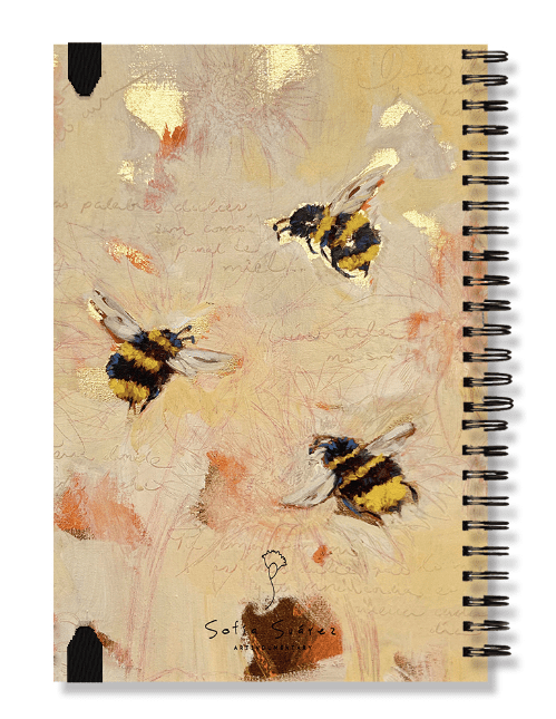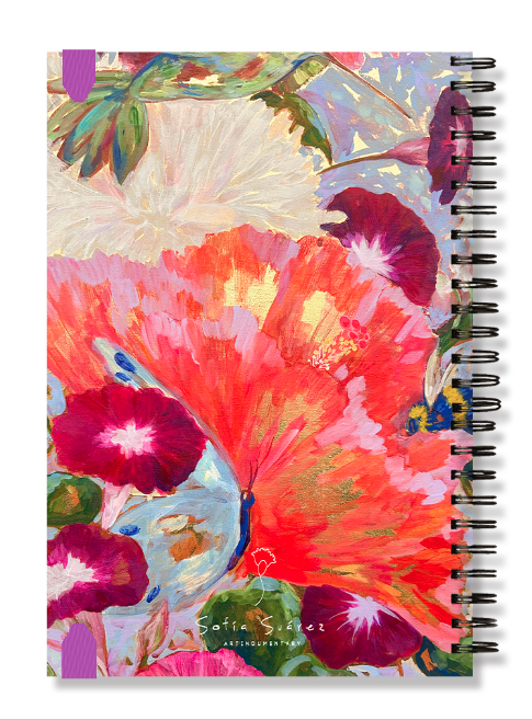 Pasta dura con ilustraciones de mis pinturas y detalle en foil dorado.
